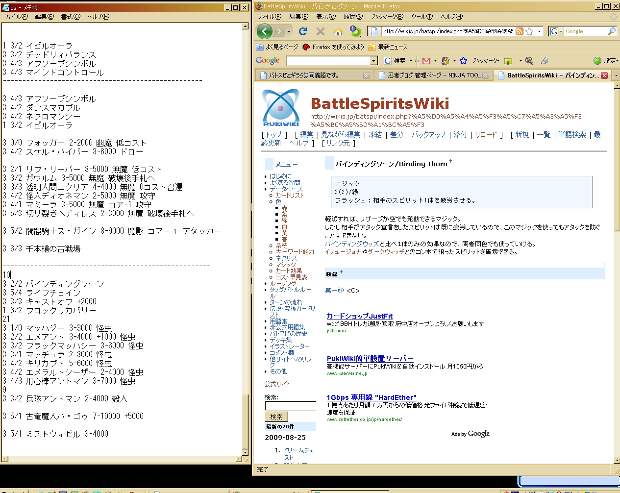 4、そのカードを生かすカードをwikiみながら、同じ色や能力で探す。あとで削るので大体でいい。