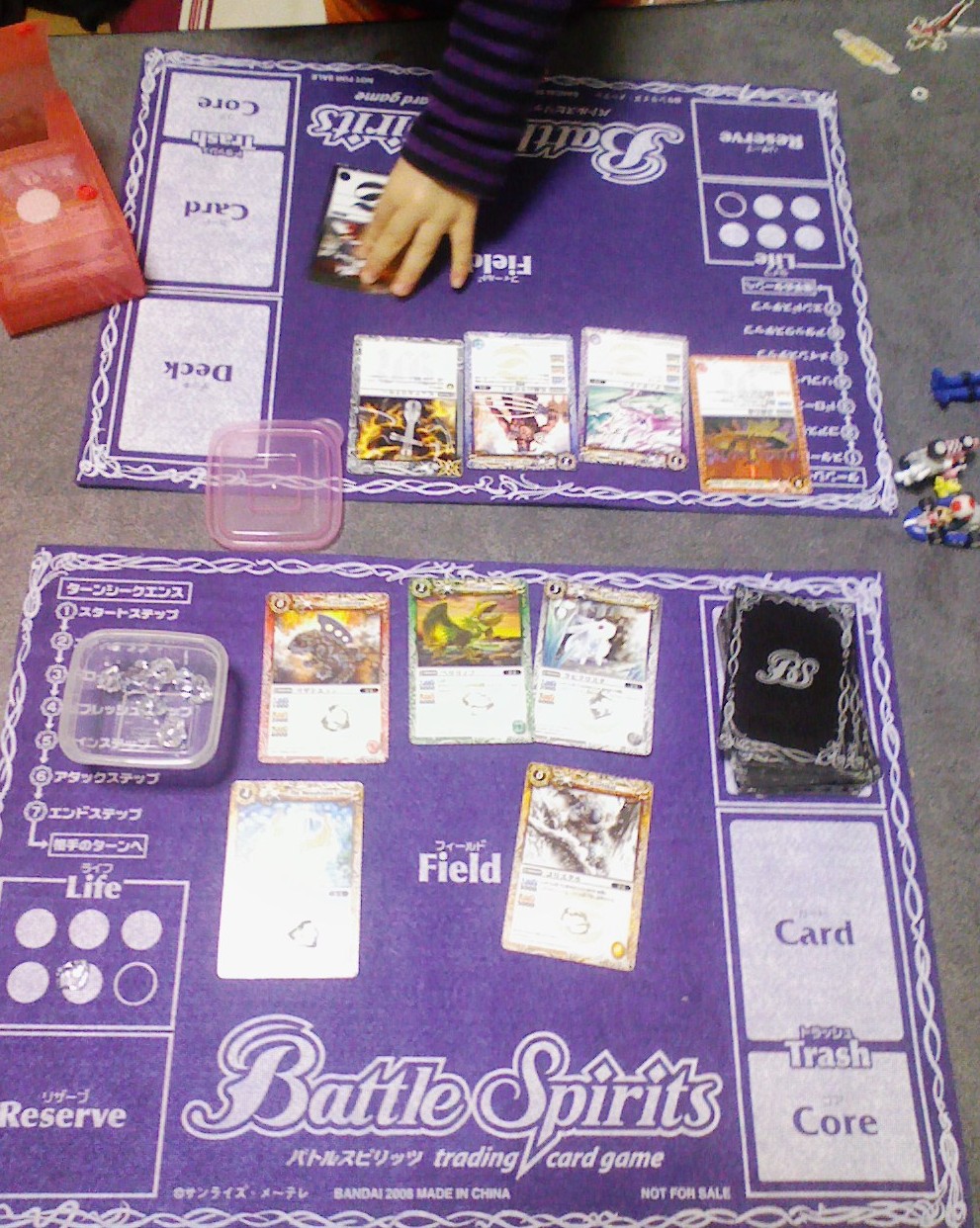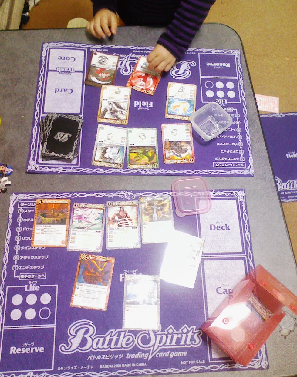 子供がバトスピプレイシートを出して、カードを並べ始めました。